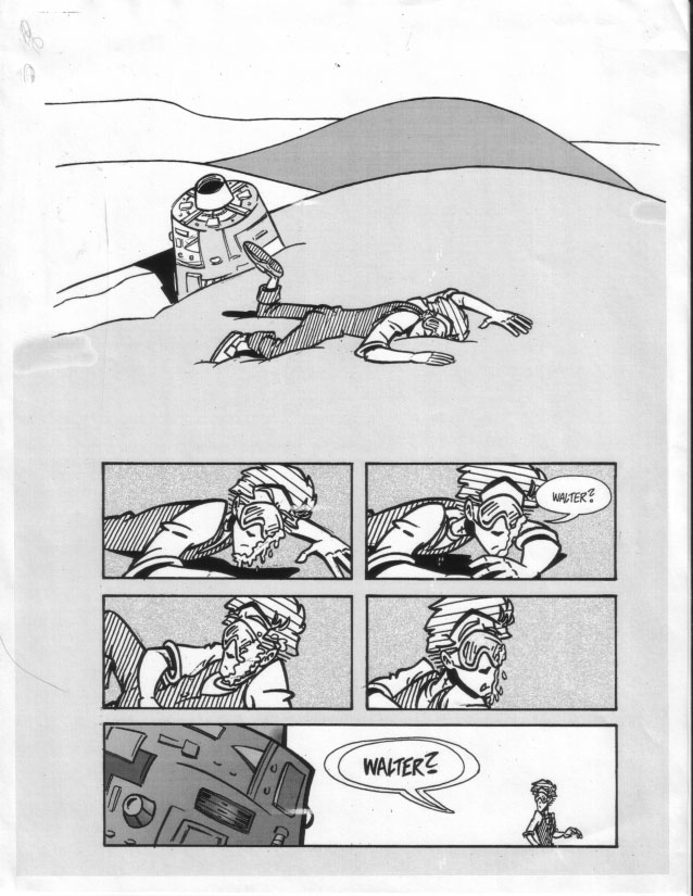 We wrote, Jeff drew, Chris started exploring the technical possibilities for computerized black and white ‘tones’ and plowed ahead on the first few issues, meaning to build up a couple issue safety net to avoid falling behind once we began publishing.